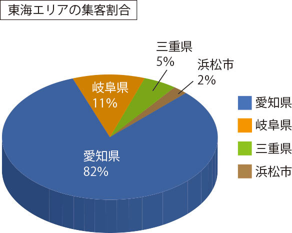 また、愛知県内のエリア 別データもまとめてみました。愛知県内でも名古屋市内 が半分以上占めています。参考にして頂けたらと思います。